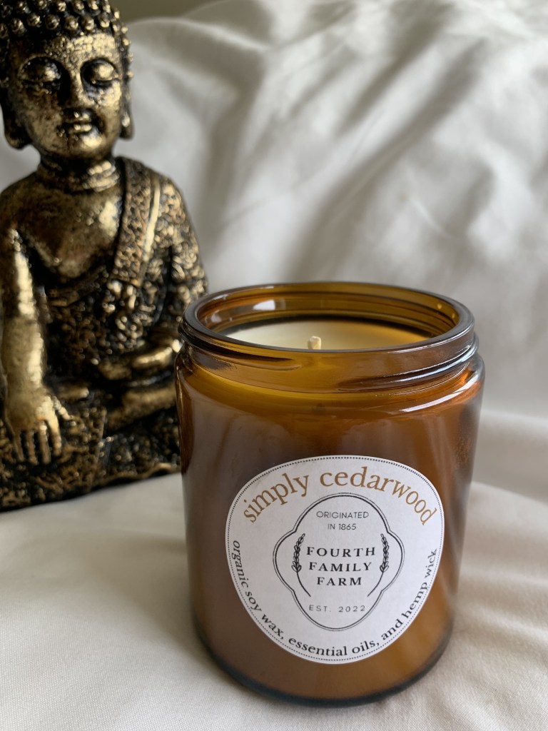 These candles are 100% non-toxic, all natural soy with essential oils. Hand poured in small batches with Cedarwood essential oil only. This sweet and woodsy scent reduces anxiety and stress, and promotes a better nights sleep. Burn for your meditations or practice, and bask in the glow of this Cedarwood soy candle.