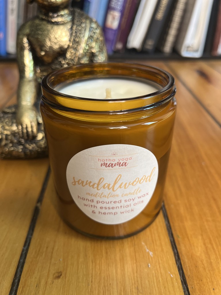 These candles are 100% non-toxic, all natural soy with essential oils. Hand poured in small batches with Sandalwood essential oil. These candles are sweet, earthy, woodsy, and absolutely lovely. They remind me of my days on the banks of the Ganges river, listening to Sadhus burning real chunks of sandalwood for their ceremonies. Use this candle to transport you to that warm, loving place in your heart.